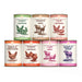 | Pack x 400g | 1 each of Turkey & Chicken, Rabbit & Chicken, Lamb & Beef, Venison & Beef, Duck & Chicken, Simply Beef, Simply Chicken |